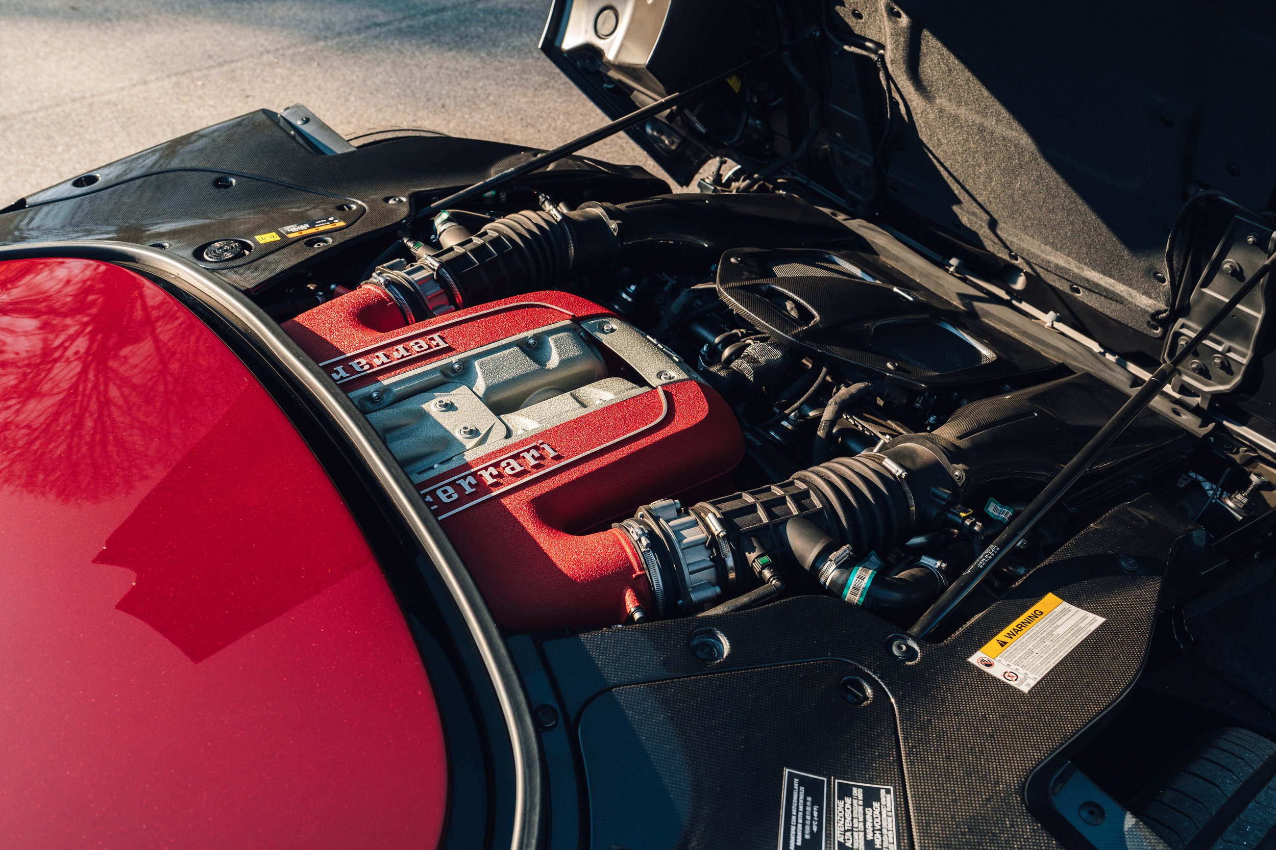 This extremely low-mileage (259 miles) model has no windscreen, instead benefiting from a ‘Virtual Windshield’ created by Ferrari engineers that channels airflow through the bonnet and out. It is the perfect modern interpretation of models you’d see taking on the Mille Miglia in days gone by and is finished in a two-tone livery comprising Rosso California with a Grigio Coburn nose section and Argento Nürburgring accents that throws back to some of Ferrari’s most memorable racing colour schemes.