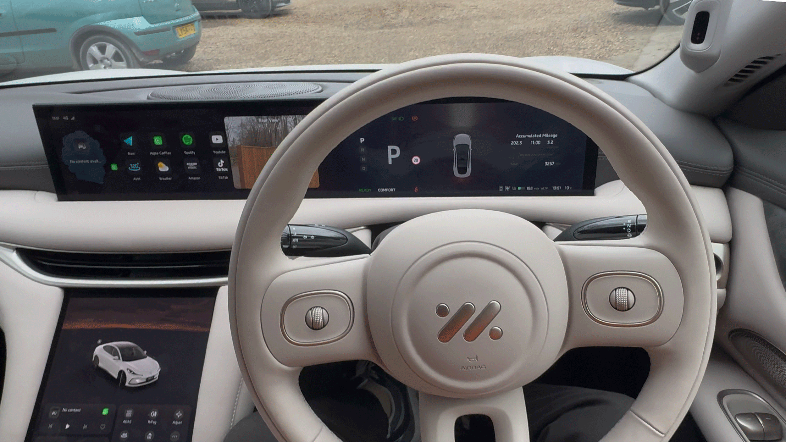 There is one annoying thing that I couldn't get used to, however, especially in an urban environment. The view out of the rear window is, to be honest, laughable. It's such a narrow view that I'd almost have preferred if MG had gone down the Polestar 4 route, using a camera to provide visibility via a digital rear-view mirror. MG's solution is to support the tiny view out the back with a camera view, accessible both when you click into reverse and when you click a rear-view button on the wheel. But the problem is where the rear-view video is positioned. In the right-hand-drive car I had, it was quite significantly blocked by the left side of the steering wheel, so I had to tilt my head left to see it fully. That's annoying enough on the motorway, but when you're in busy city traffic with cyclists and mopeds filtering past, it's especially inconvenient.